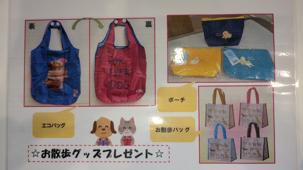 (3月2日時点で一部お散歩バッグが当院に届いていない為、後日のお渡しか、今あるものの中から選んでいただきますようお願い致します。)